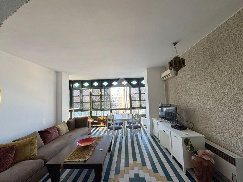 À l’entrée, vous trouverez une kitchenette ainsi qu’un salon très lumineux grâce à ses fenêtres qui s’ouvrent directement sur le port. Un coin salle à manger est également à votre disposition.