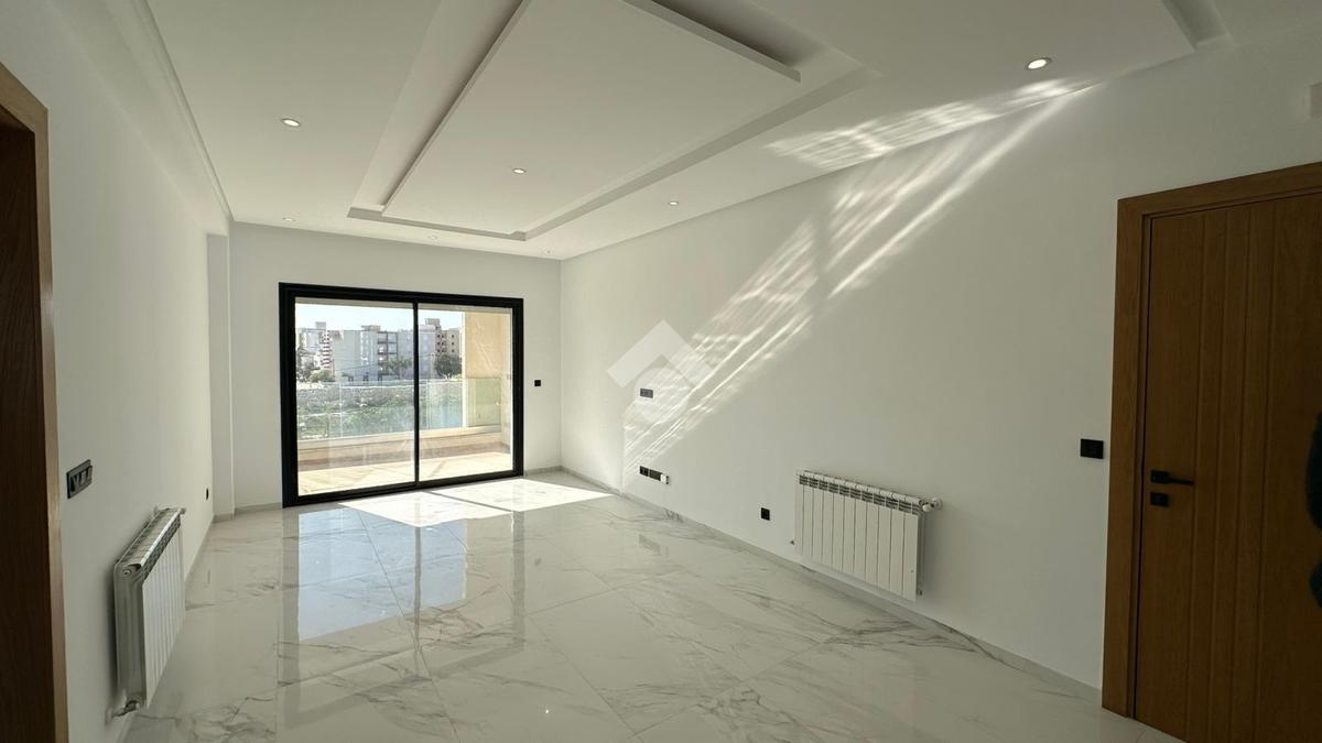 Cet appartement de type S+2, jamais habité, est situé au deuxième étage d’une résidence avec piscine, en deuxième position par rapport à la mer. Dès l’entrée, vous découvrez un salon lumineux grâce à sa grande baie vitrée ouvrant sur un balcon offrant soleil et lumière du jour. La cuisine est indépendante, fonctionnelle et bien agencée, complétée par un séchoir. La partie nuit, accessible par un couloir, se compose de deux chambres à coucher, dont une suite parentale avec sa propre salle de douche et une deuxième chambre équipée d’un dressing. Une salle de bain avec baignoire vient compléter cet espace. Le véritable atout de cette résidence reste son calme ainsi que la qualité et la tranquillité du voisinage, offrant un cadre de vie agréable et serein.